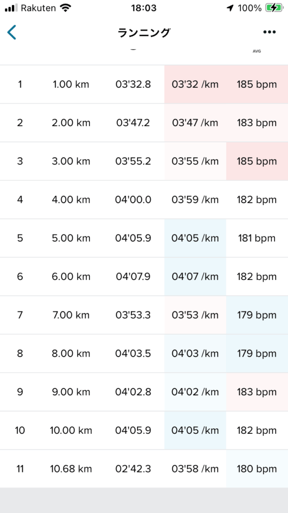 足は疲れてないのに、もう心臓まわりが壊れたのか、まったくペースを上げられず。結局全体的には、1km4分程度のペースになってしまい、ハーフやフルとあまり変わらないペースになってしまいました。