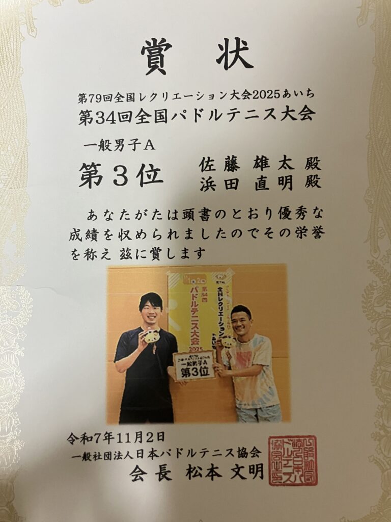 第34回 全国パドルテニス大会2025 in愛知、3位でした